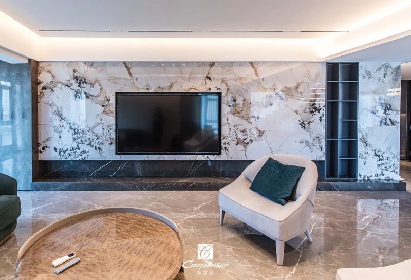 紋理寫意的巖板、石材與木作搭配運(yùn)用
