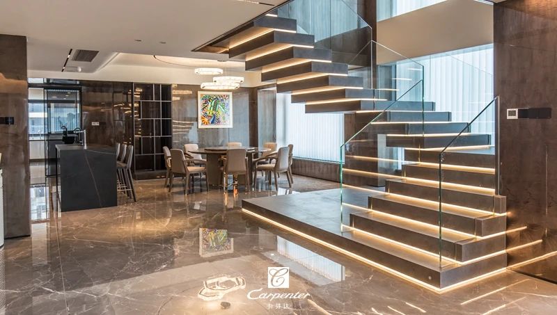輕奢頂層復(fù)式,融合多種材質(zhì)格調(diào)
